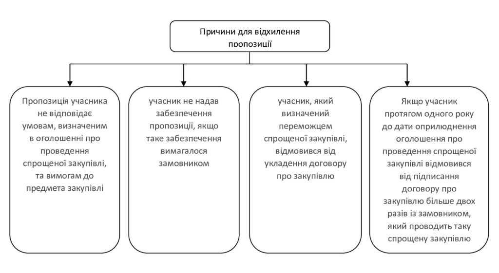 Інформація про відхилення пропозиції протягом одного дня з дня прийняття рішення замовником оприлюднюється в електронній системі закупівель та автоматично надсилається учаснику, пропозиція якого відхилена через електронну систему закупівель.