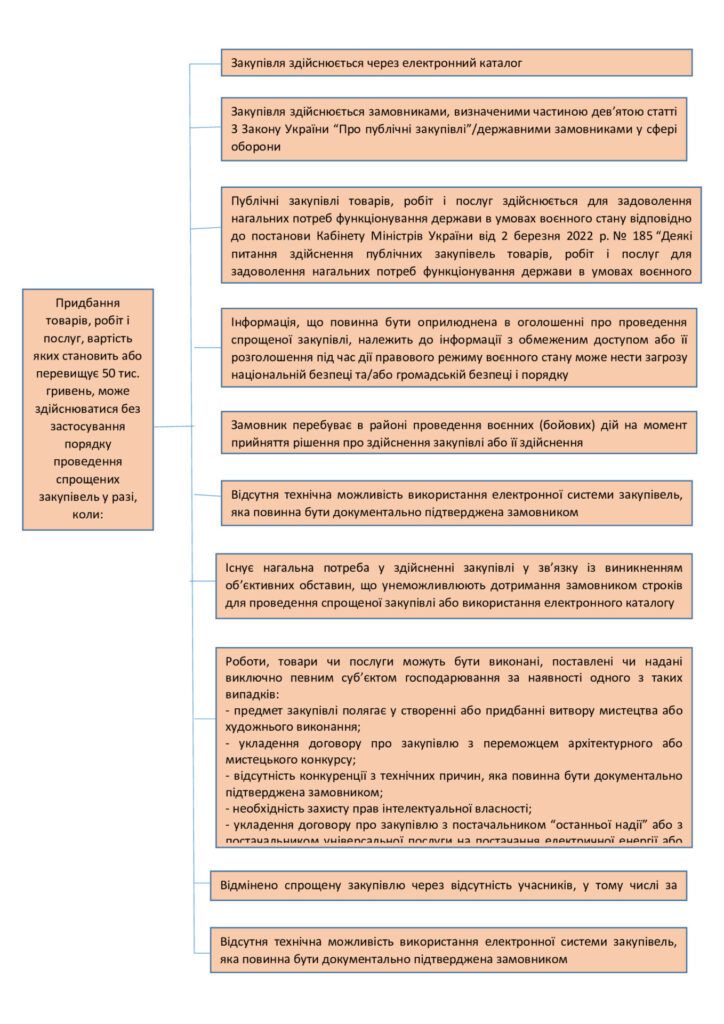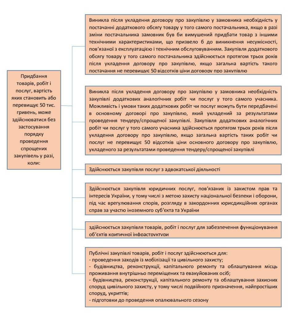 Замовники здійснюють публічні закупівлі, вартість яких становить або перевищує 50 тис. гривень, із використанням порядку проведення спрощених закупівель, встановленого Законом України “Про публічні закупівлі”.