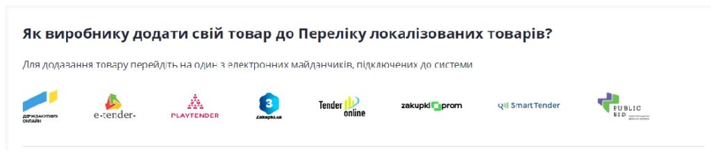Перелік товарів формується автоматично з поданих виробниками товарів, за умови, що ці товари відповідають вимогам зазначеним в «Порядку підтвердження ступеня локалізації виробництва товарів».